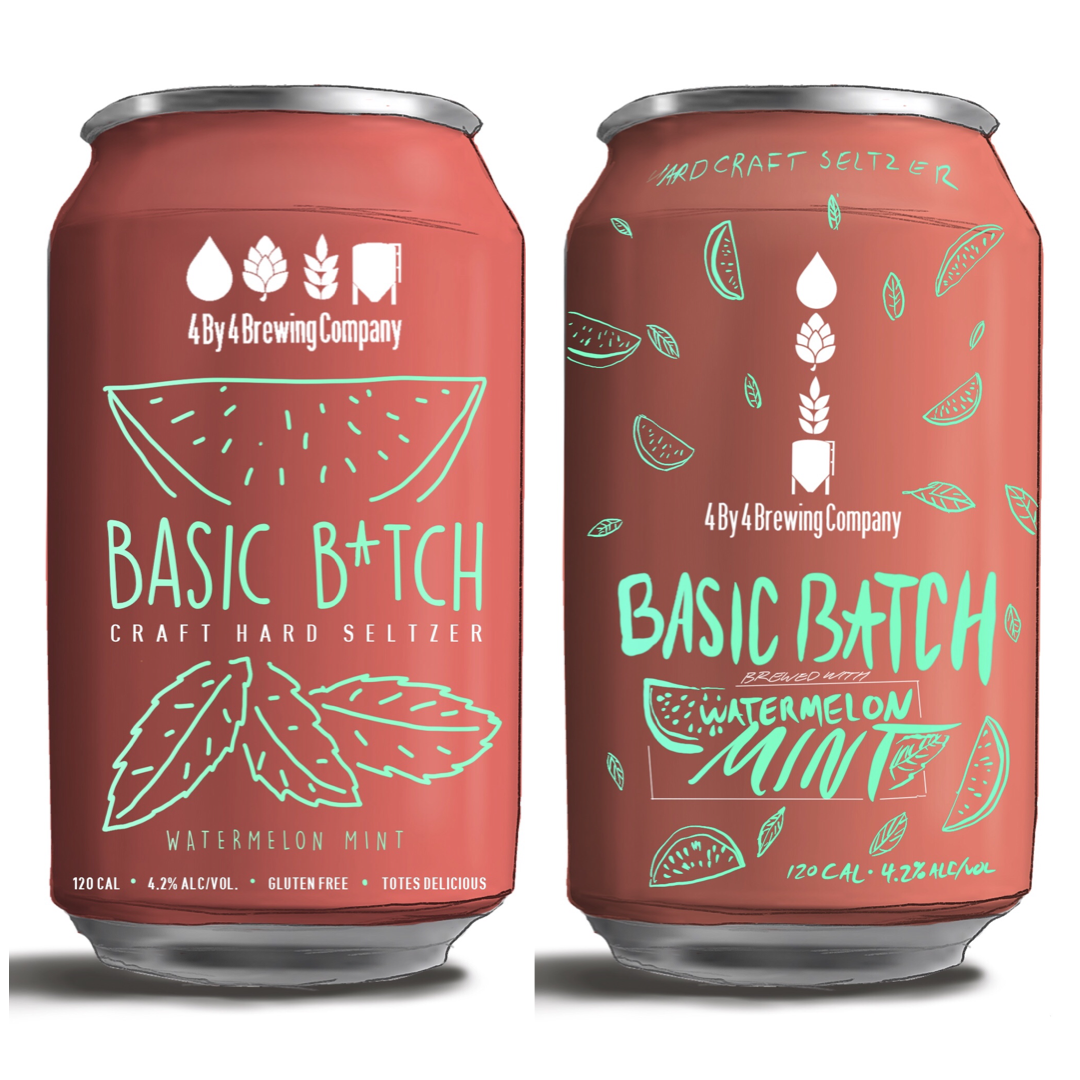 Four by Four wanted to create a totally fun and bubbly look and feel for their new line of Hard craft seltzer cans. the name Basic batch, a play on "basic bitch", was derived from the product's simplicity to brew and its limited number of ingredients.