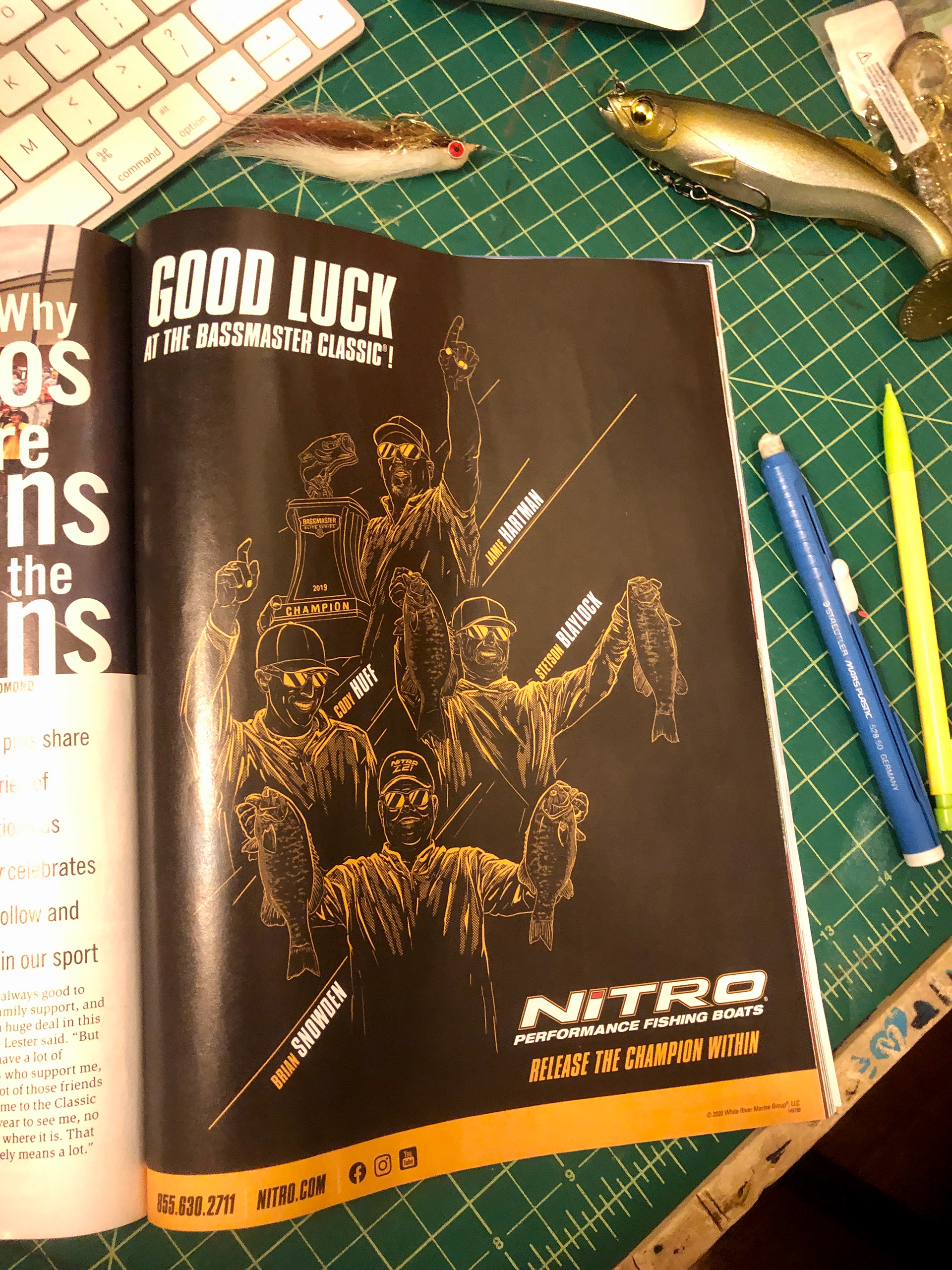 What started as a simple request for a product-focused magazine ad turned into a unique opportunity to stand out in a sea of competition. I suggested an unexpected approach: being more focused on our pro anglers, rather than just showing the typical product sales pitch. This change in perspective led to a cohesive and creative execution of how to promote our brand during one of the largest fishing events of the year—the BAssmaster Classic. My illustration of the anglers was used in a magazine ad, on social media, and was pitched as signage in the brand booth at the event.